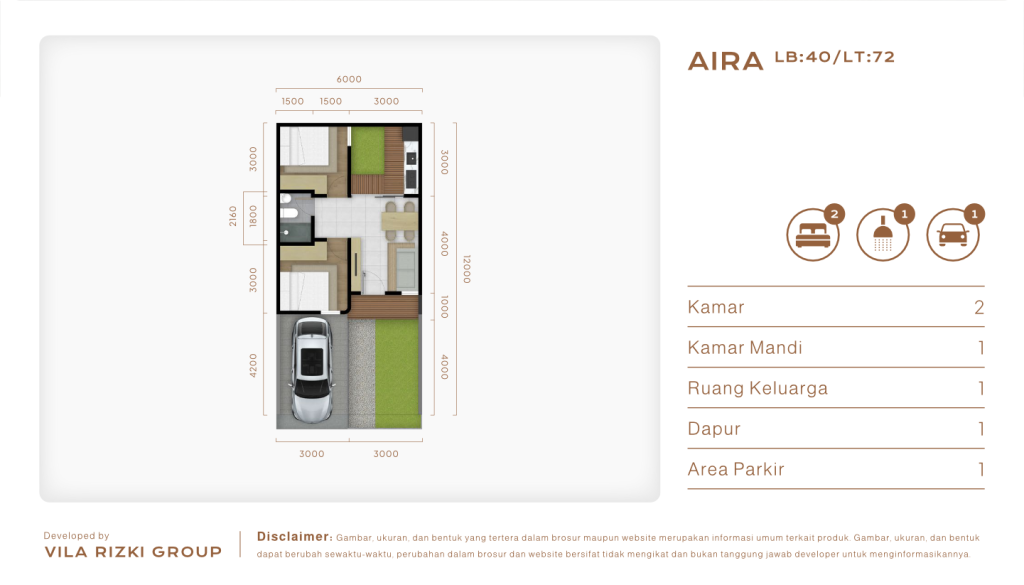 ipe Aira di Insaani Legok merupakan rumah 1 lantai dengan luas bangunan 40m2 dan luas tanah 72m2. Rumah ini memiliki 2 kamar tidur, 1 kamar mandi, dan 1 carport.
